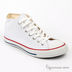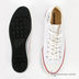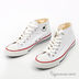 Классические высокие текстильные кеды Chuck Taylor All Star. Резиновая проклеенная подошва с синей и красной полосой. В комплекте белые и красные шнурки.