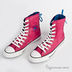 Высокие нейлоновые кеды Chuck Taylor AS Slouchy. Ярко-розовая атласная подкладка. Резиновая проклеенная подошва. Сзади завязка-кулиска. В комплекте белые и синие шнурки.