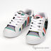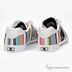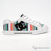 Стильные кроссовки яркой расцветки в полоску, на шнурках. Язычок и воротник обуви сделаны с поролоновой прокладкой для еще большего комфорта. Передний свободный край и задник выполнен из кожи. Берцы обуви украшены аппликацией в виде логотипа марки. В обуви DC специальная резиновая подметка, стойкая к истиранию. Подошва украшена декоративной полоской и логотипом марки в тон основной расцветки.