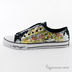 Стильные кеды Ed Hardy выполнены из текстиля цвета хаки, украшенного затейливым брутальным принтом. Резиновый мыс подчеркивает классический силуэт модели. Шестипазовая шнуровка носит декоративный характер, так как язычок пришит к основанию, и шнурки отсутствуют.