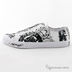 Стильные кеды Ed Hardy выполнены из текстиля цвета хаки, украшенного затейливым брутальным принтом. Резиновый мыс подчеркивает классический силуэт модели. Шестипазовая шнуровка носит декоративный характер, так как язычок пришит к основанию, и шнурки отсутствуют.