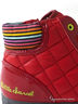 Высокие стеганые кеды на шнуровке и с застежкой на молнию с внутренней стороны. Верхняя часть из трикотажа в полоску.