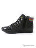 Высокие стеганые кеды на шнуровке и с застежкой на молнию с внутренней стороны. Верхняя часть из трикотажа в полоску.