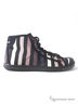 Высокие кеды из текстиля в полоску, на шнуровке. 7 пар люверсов (2 люверса контрастного цвета). Вышивка Little Marcel сзади и на язычке.