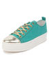 Кеды из текстиля с блестящей вставкой из синтетики. Шнурки. Подкладка из хлопка, стелька из кожи. Толстая подошва из синтетики.