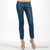 Женские джинсы зауженные книзу. Отрезной пояс. Посажены на кокетку. Два задних кармана. Застегиваются на молнию сбоку. Спереди две декоративные молнии.