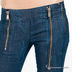 Женские джинсы зауженные книзу. Отрезной пояс. Посажены на кокетку. Два задних кармана. Застегиваются на молнию сбоку. Спереди две декоративные молнии.