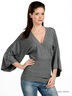 Детали: V-образный вырез горловины с запахом, широкий цельнокроенный рукав, низ изделия на высокой трикотажной резинке