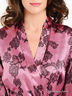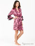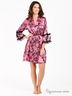 Женское комоно из тонкой атласной ткани с оригинальным принтом. Завязывается на атласный пояс с запахом. Рукав 7/8 декорирован контрастной лентой и кружевной окантовкой.