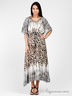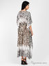 Модное длинное кимоно свободного силуэта. Выполнено из гладкой хб ткани с оригинальным узором. V-образный вырез горловины. Широкие короткие цельнокроеные рукава. По бокам разрезы. Талия на кулиске и веревочке.