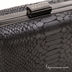 Стильный клатч на металлическом каркасе, с принтом под питона. Застегивается на оригинальный замок. Имеется длинный съемный ремешок.