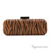 Клатч на металлическом каркасе, декорирован натуральным мехом (пони), принт - окрас под зебру, на съемном длинном ремне, одно отделение, застегивается на декоративную застежку.