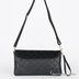 Модный клатч из искусственной кожи и замши. На передней стороне логотип бренда и маленькие вставки в виде клепок. Основное отделение застегивается на застежку клапан и молнию. Внутри кармашек на молнии и два маленьких открытых кармашка. Регулируемая съемная ручка-ремешок. Цвет фурнитуры - золото, ножек нет.