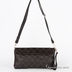 Модный клатч из искусственной кожи и замши. На передней стороне логотип бренда и маленькие вставки в виде клепок. Основное отделение застегивается на застежку клапан и молнию. Внутри кармашек на молнии и два маленьких открытых кармашка. Регулируемая съемная ручка-ремешок. Цвет фурнитуры - золото, ножек нет.