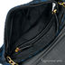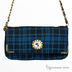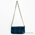 Черно-синий клатч с застежкой клапаном, магнитной пуговицей и застегивается на молнию. Модель украшена декоративным элементом ввиде золотой броши со стразами. Наплечный ремень представляет из себя золотую цепь, которая переплетается с кожаным ремешком. Внутри один карман на молнии, один карман для мобильного, карман для документов.