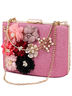 Прямоугольный розовый блестящий женский клатч ( маленькая сумочка ), украшенный цветами. Ручка-цепь через плечо. Оттенок может меняться в зависимости от освещения. Маленькая сумка может использоваться, как для повседневной носки, так и для торжественных мероприятий. Размер 13х9х13 см.