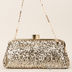 Изящный женский клатч. Стенки изделия мягкие. Изделие украшено пайетками. Основное отделение застегивается на рамочный замок. Внутри один прорезной карман на молнии. Подкладка - текстиль. В комплекте съемный ремешок.. Цвет фурнитуры - золото, ножки отсутствуют.