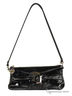 Внутри карман на молнии и небольшой кармашек для мелочей. Прилагается небольшой ремешок для руки и плечевой ремешок.