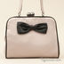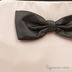 Вечерняя мягкая сумочка из атласного текстиля для ношения в руке. Внутри основное отделение и один открытый кармашек. Застежка на рамочный замок. Передняя часть декорирована контрастным бантиком.