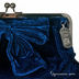 Бархатный клатч с замком-защелкой декорирован большим бантом и металлическим логотипом производителя. Внутренние карманы: один карман на молнии, один карман для мобильного, один карман для документов. Тканевый подклад.