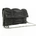 Необычная маленькая сумочка из жатой кожи на одинарном металлическом ремешке. Основное отделение закрывается на клапан на кнопке и содержит карманы разного типа. Подкладка - серый хлопок, фурнитура - серебро.