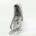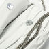 Необычная маленькая сумочка из жатой кожи на одинарном металлическом ремешке. Основное отделение закрывается на клапан на кнопке и содержит карманы разного типа. Подкладка - серый хлопок, фурнитура - серебро.