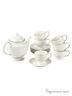 Лёгкий дизайн чайной посуды несомненно займёт почётное место среди Вашей любимой посуды. Своей лаконичностью она несомненно внесёт спокойствие и уют в Ваш дом. В наборе: 6 чашек + 6 блюдец + чайник с крышкой.