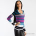 Чудесная яркая кофточка с фигурным вырезом. Разноцветные полоски несомненно являются изюминкой этой кофты. Трикотаж средней плотности, очень приятный телу. Кофту прекрасно можно сочетать как с юбкой, так и брюками и джинсами. Дополните свой гардероб кофтой из новой коллекции итальянского бренда Bambolita!