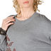 Стильная трикотажная кофта с круглым вырезом горловины и рукавами "летучая мышь". Спереди кофту украшает нашивка в виде букета цветов, клетчатый поясок в тон нашивке.