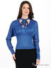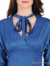 Детали: отрезной лиф; широкий рукав с высокой манжетой; V-образный вырез с запахом; окантовка выреза переходит в декоративные ленты спереди
