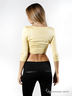 Укороченная шерстяная кофта на пуговицах, с круглым вырезом горловины, декорирована стразами разной формы и размера.
