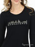 Детали: круглый вырез, длинные рукава, на полочке 2 накладных кармана, украшена мелкими стразами