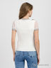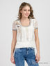 Кофта с короткими рукавами и округлым вырезом горловины. Изделие украшено декоративными элементами.