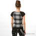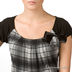 Трикотажная кофта в клетку с круглым вырезом горловины и рукавами-фонариками. Спереди кофта украшена бантиком.