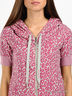 Мягкая трикотажная кофта согреет Вас в холодные вечера и добавит романтичности в образ. Короткий рукав. Застегивается на молнию. Капюшон на кулиске. На спине набивной рисунок в виде логотипа бренда. Трикотажные манжеты в мелкий рубчик. Два врезных кармана.