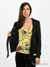 В стильной кофте Вы почувствуете себя королевой вечеринки, а удобный крой не будет стеснять ваших движений даже в самом экзотичном танце. Трикотажная эластичная ткань. Длинный рукав. Застегивается на молнию и завязывается на шелковую ленту. Два накладных кармана обработанные шелковой лентой. Трикотажные манжеты в рубчик. На спине на правом боку набивной рисунок в виде логотипа бренда.