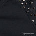 Стильная трикотажная кофта для девочки с V-образным вырезом горловины. Плечи декорированы металлическими элементами со стразами. Низ изделия посажен на эластичную резинку.