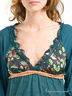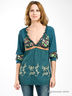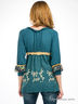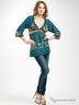 Кофта расклешенного силуэта. Отрезной трикотажный лиф с атласными вставками. Рукава реглан 3/4 с атласными оборками. Украшено вышивкой.