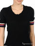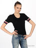 Детали: округлый вырез, короткие рукава с манжетами в рубчик, крой подчеркивает талию