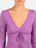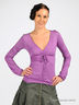 Трикотажная кофта из нежного, приятного на ощупь материала. V-образный вырез. Под грудью вшита кулиска. Длинные рукава присборенные на локтях резинкой.