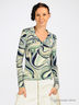 Приталенная эластичная кофта. Отложной воротник. V-образный вырез с пуговицами.