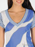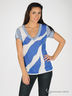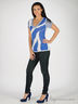 Кофта прямого кроя из тонкой ткани. V- образный вырез. Короткие рукава с хлястиками. Кофта декорирована вставками из люрекса.