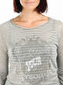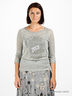 Легкая трикотажная кофта с прозрачными полосками с люрексом. Круглая горловина. Длинные рукава реглан. На полочке принт с нашивкой из тюли.