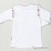 Детали: застежка на кнопки на плече, длинный прямой рукав декорирован в пройме рюшей, полочка декорирована набивным рисунком