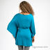 Яркая кофта красивого бирюзового оттенка. Модель свободного кроя. Цельнокройная полочка и спинка соединены плечевыми швами. В области талии по бокам прорези для пояса. V-образный вырез горловины отделан металлическими глянцевыми клепками. Сзади – логотип Nic Club из мелких клепок. К кофте прилагается браслет.