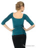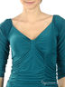 Детали: V-образный вырез, уплотненные чашечки, рукава 3/4, декорирована сборками на резинку