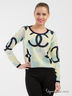 Кофта свободного покроя с длинными рукавами и округлым вырезом горловины. Модель выполнена из принтованной ткани контрастной расцветки. Отличный вариант на каждый день.