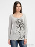 Кофта с длинными рукавами и округлым вырезом горловины. Спереди модель декорирована принтом.