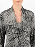 Детали: двухслойная полочка, верхняя часть изделия декорирована узлом, длинный прямой рукав