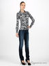 Легкая трикотажная блузка из тонкой эластичной ткани, очень приятной на ощупь, отлично подойдет как для офисного стиля, так и для повседневной носки. Прямого кроя. Широкий ворот-гольф декорирован оригинальными складками. Длинный прямой рукав.